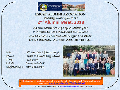 Alumni meet of USICT to be held on 6th January, 2018 at 11.00 am